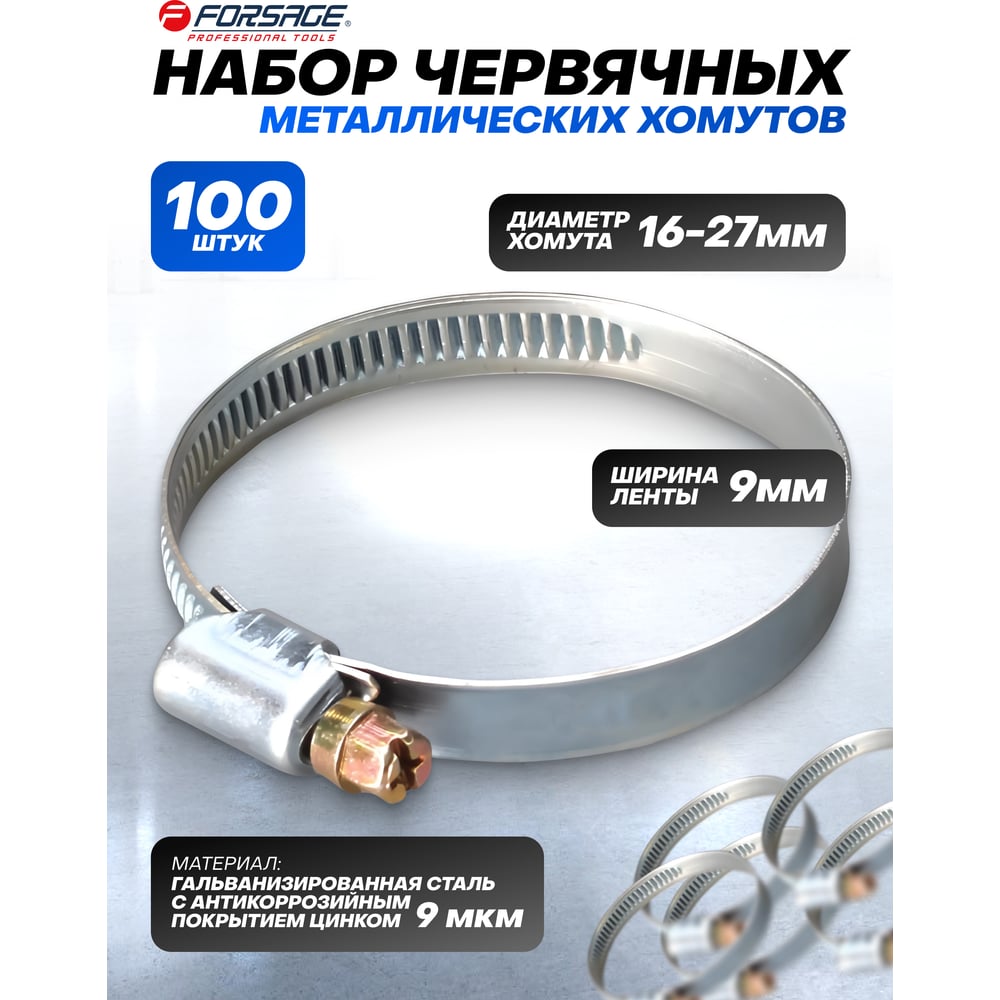Металлический червячный хомут Forsage 16-27 мм, 100 шт. 25815 F-16-27