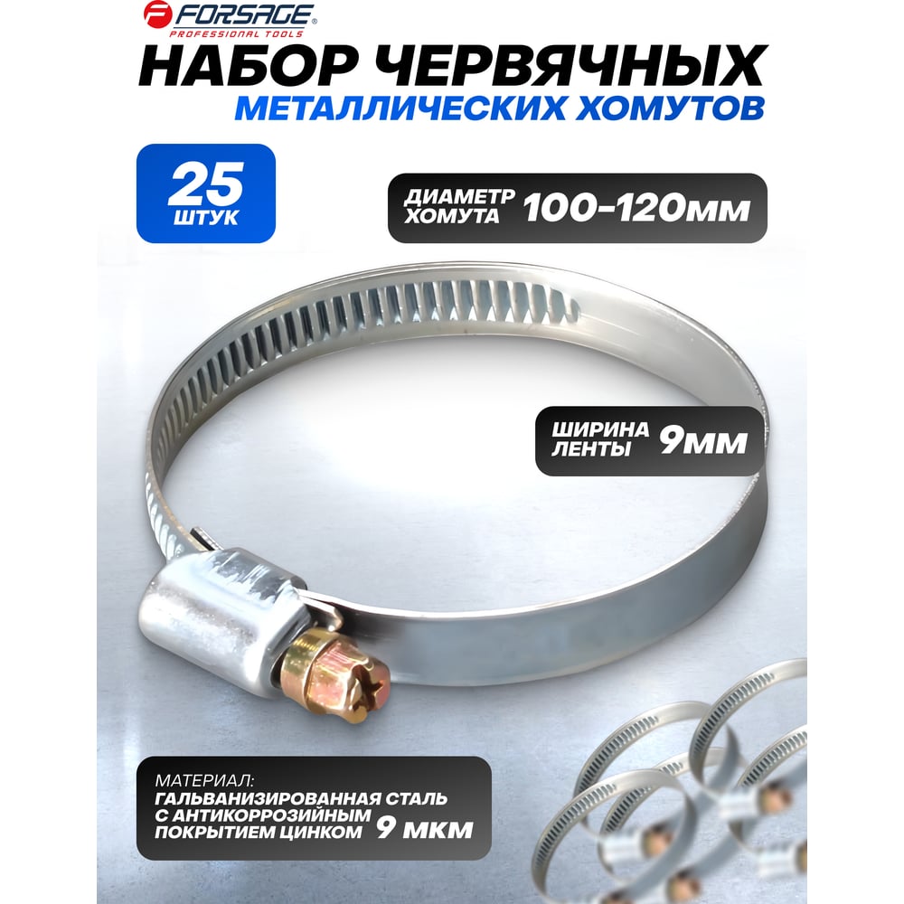 Металлический червячный хомут Forsage 25825 F-100-120