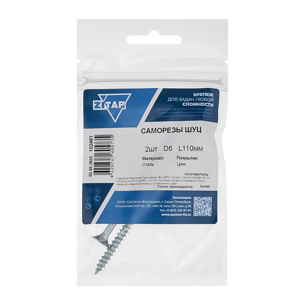 Саморез ШУц с потайной головкой 6,0x110 мм, 2 шт., пакет Zitar 102461