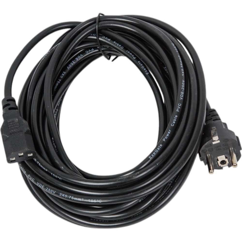 Кабель питания ExeGate Power PC-10P Евровилка Schuko-C13/0.75mm2, медь, черный, 10A, 10м 280656
