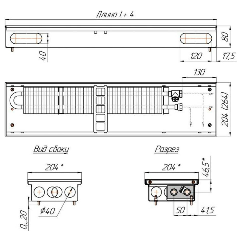 Конвектор КЗТО Бриз 200*80*2200 U (5Ал 12) NEW БР200802200UР5АЛ12 БР20080*2200UР5АЛ12
