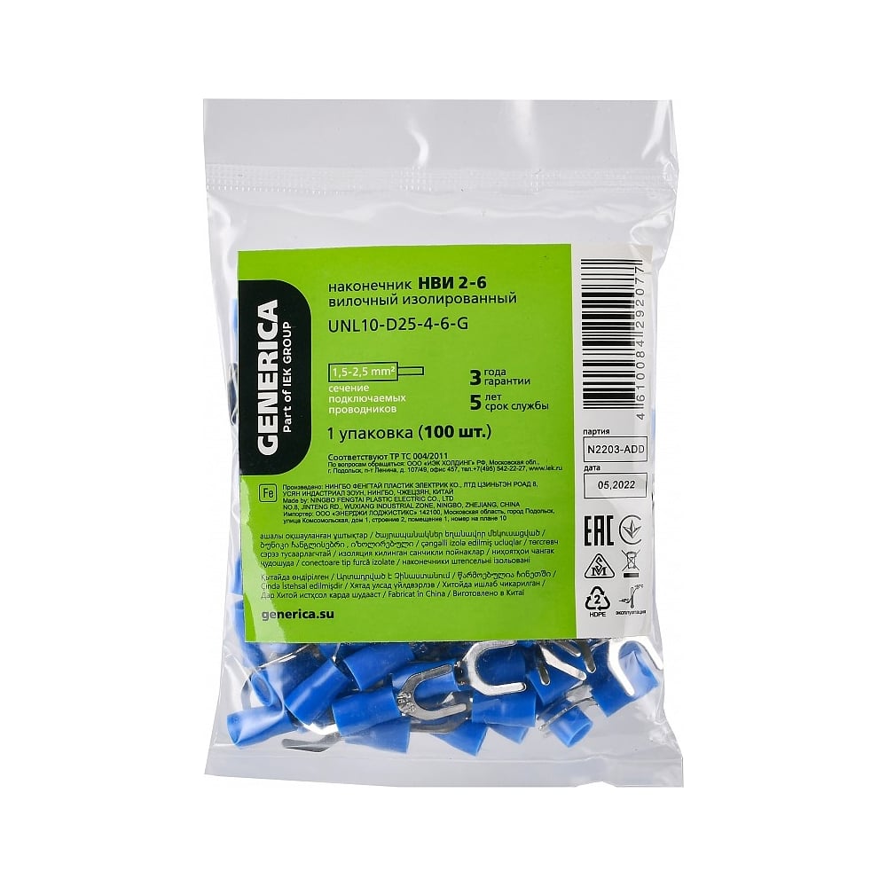 Наконечник GENERICA нви 2-6 вилка 1,5-2,5мм (100шт/упак) UNL10-D25-4-6-G