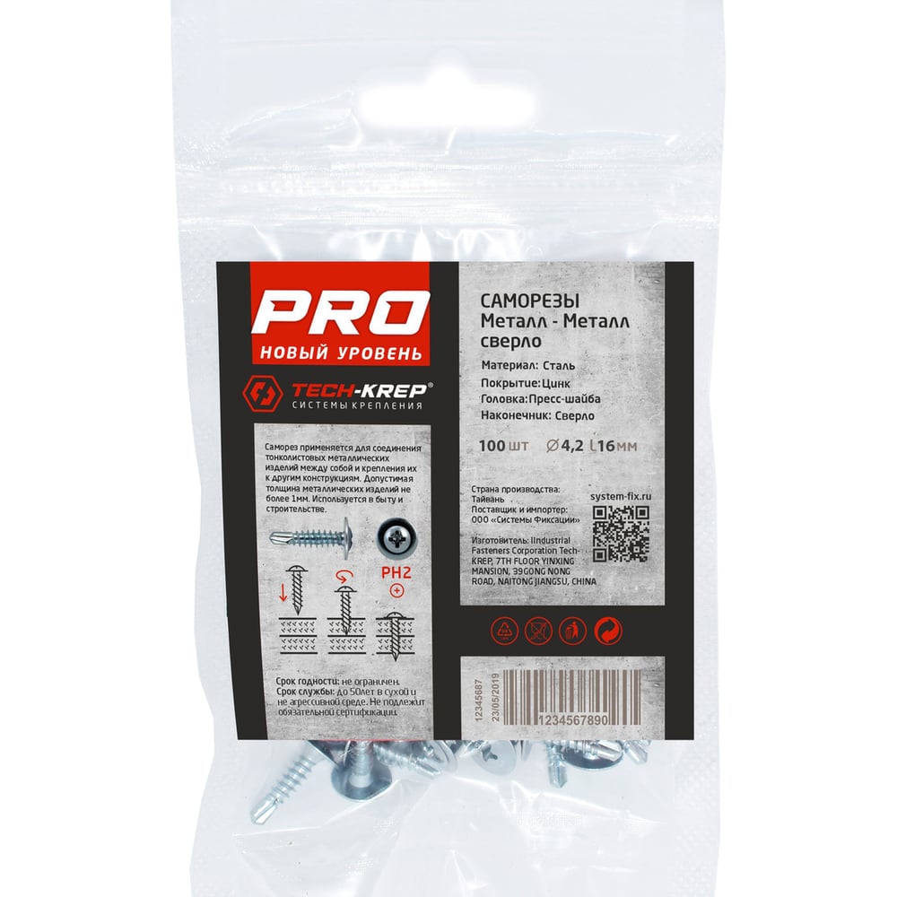 Усиленный саморез Tech-Krep PRO СММ св 4,2х16 100 шт - пакет 146532
