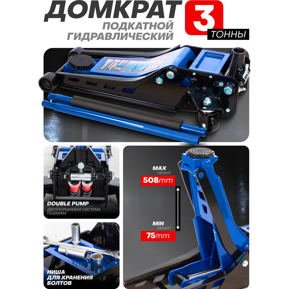 Домкрат подкатной гидравлический двухпоршневой Forsage 3т( h min 75мм, h max 508мм F-TZA830003(59207)