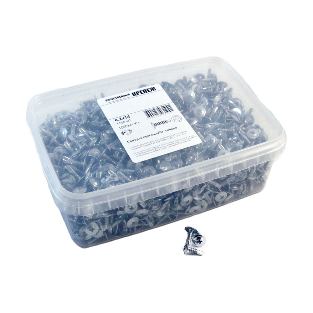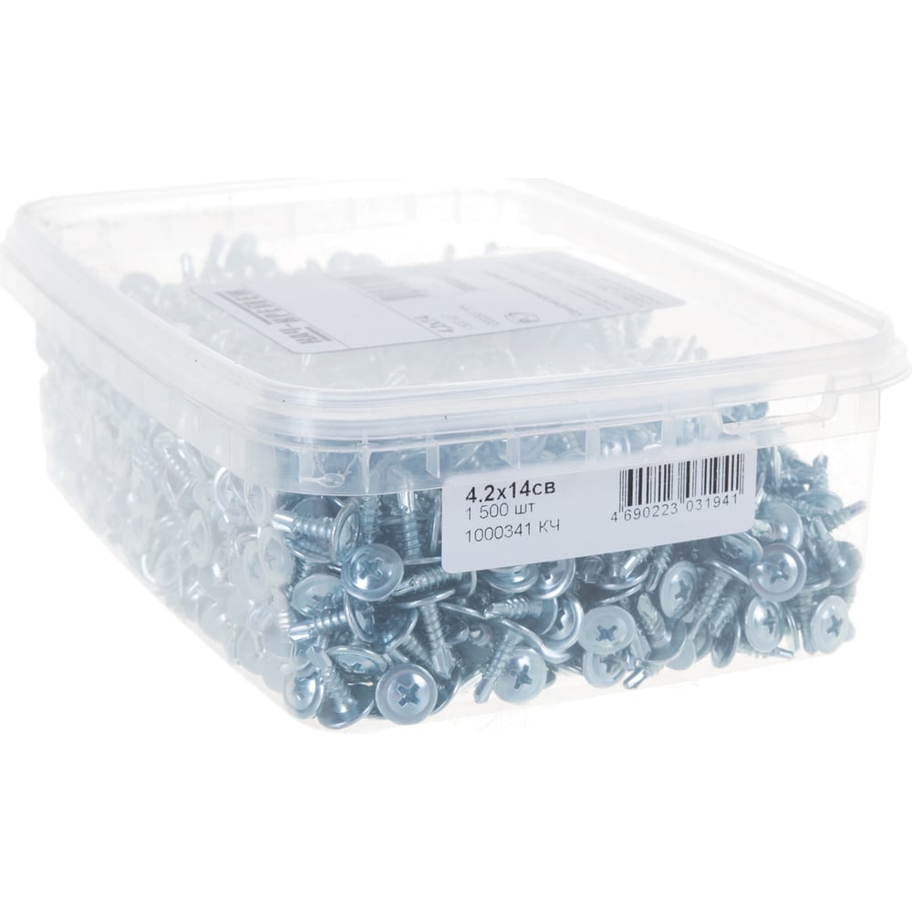 Саморез с прессшайбой Качественный крепеж 4,2х14 сверло 1500 шт 1000341 КЧ