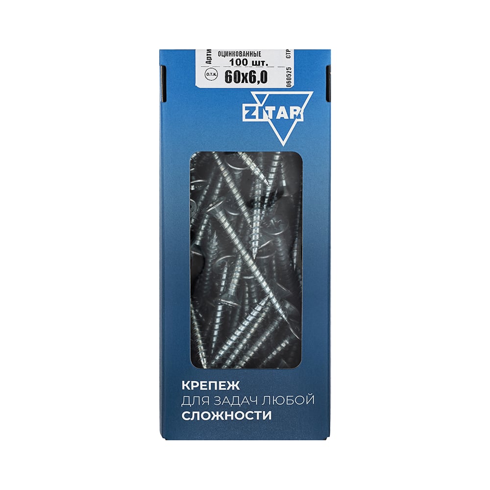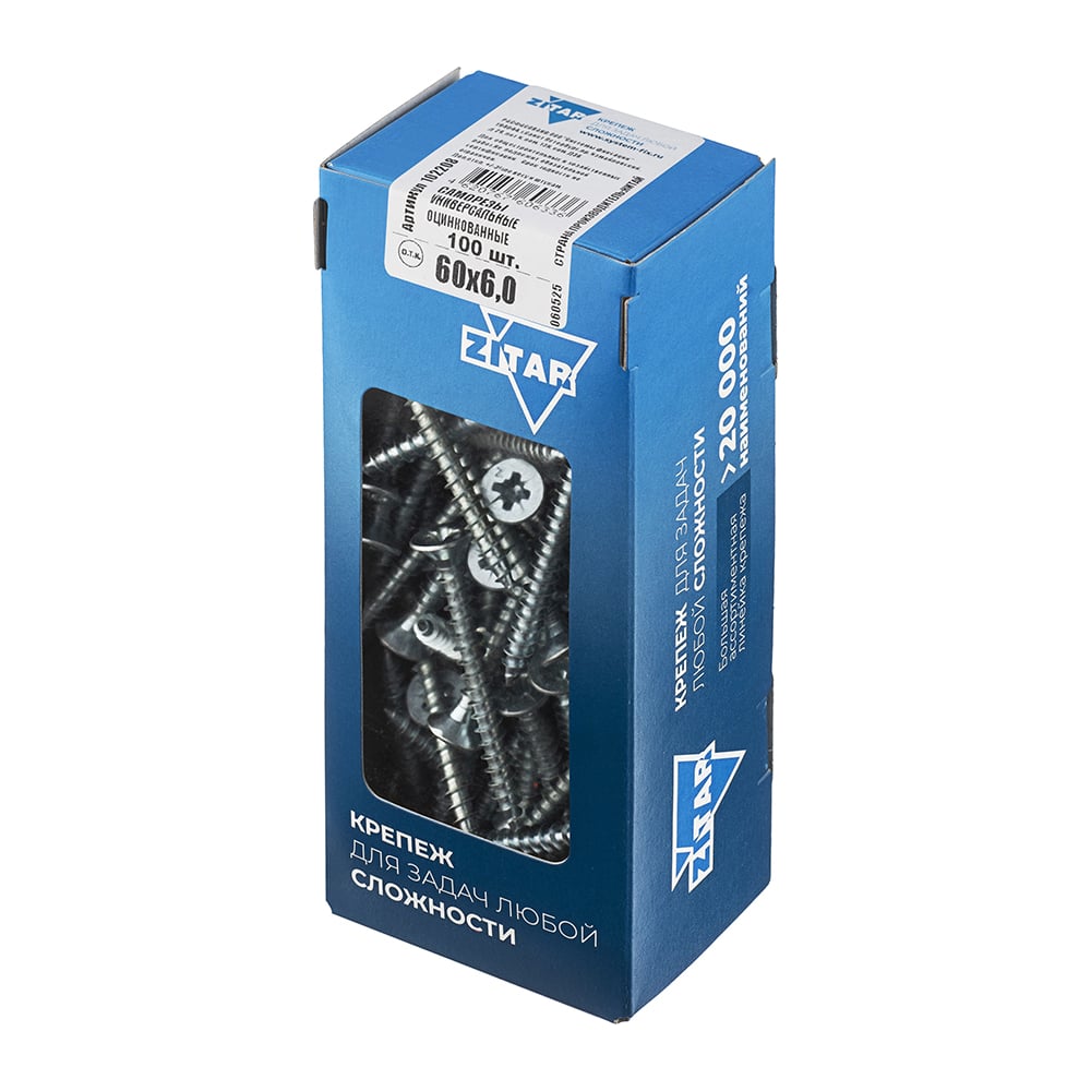 Универсальные саморезы, оцинкованные, 60x6,0 мм, 100 шт., коробка с окном Zitar 102208