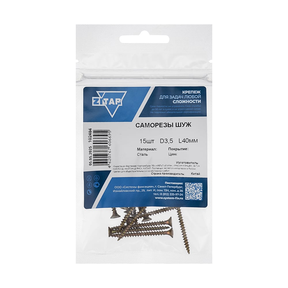 Саморез ШУж с потайной головкой 3,5x40 мм, 15 шт., пакет Zitar 102484