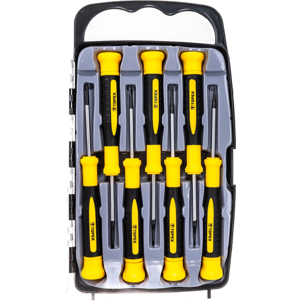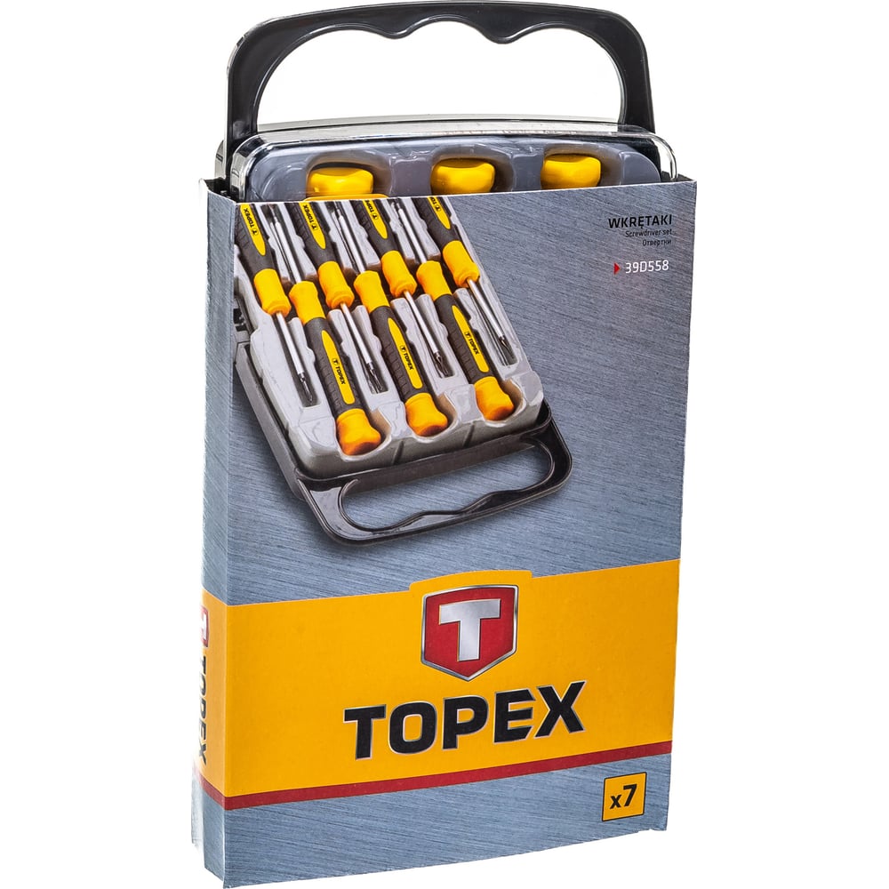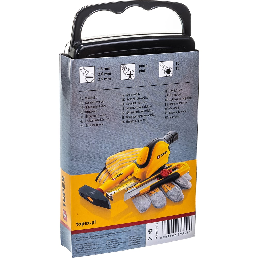 7 отверток: 1.5 x 50 мм, 2 x 50 мм, 2.5 x 50 мм, PH000 x 50 мм, PH0 x 50 мм, T5 x 50 мм, T6 x 50 мм, сталь CrV, двухкомпонентная рукоятка.