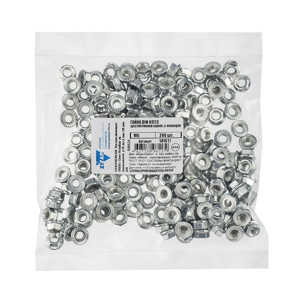 Гайка DIN6923 шестигранная оцинк. С фланцем Zitar М6 200 шт - пакет 141611