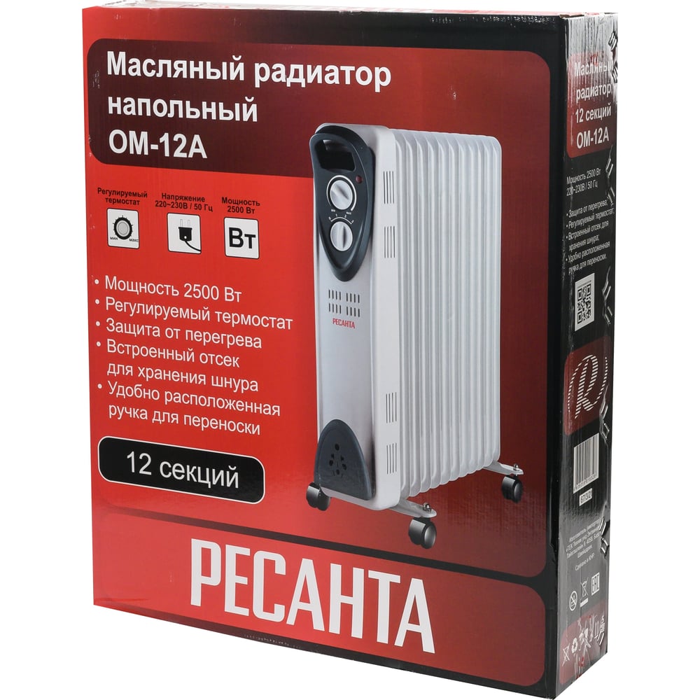 Масляный радиатор Ресанта ОМ-12А 2,5 кВт 67/3/21
