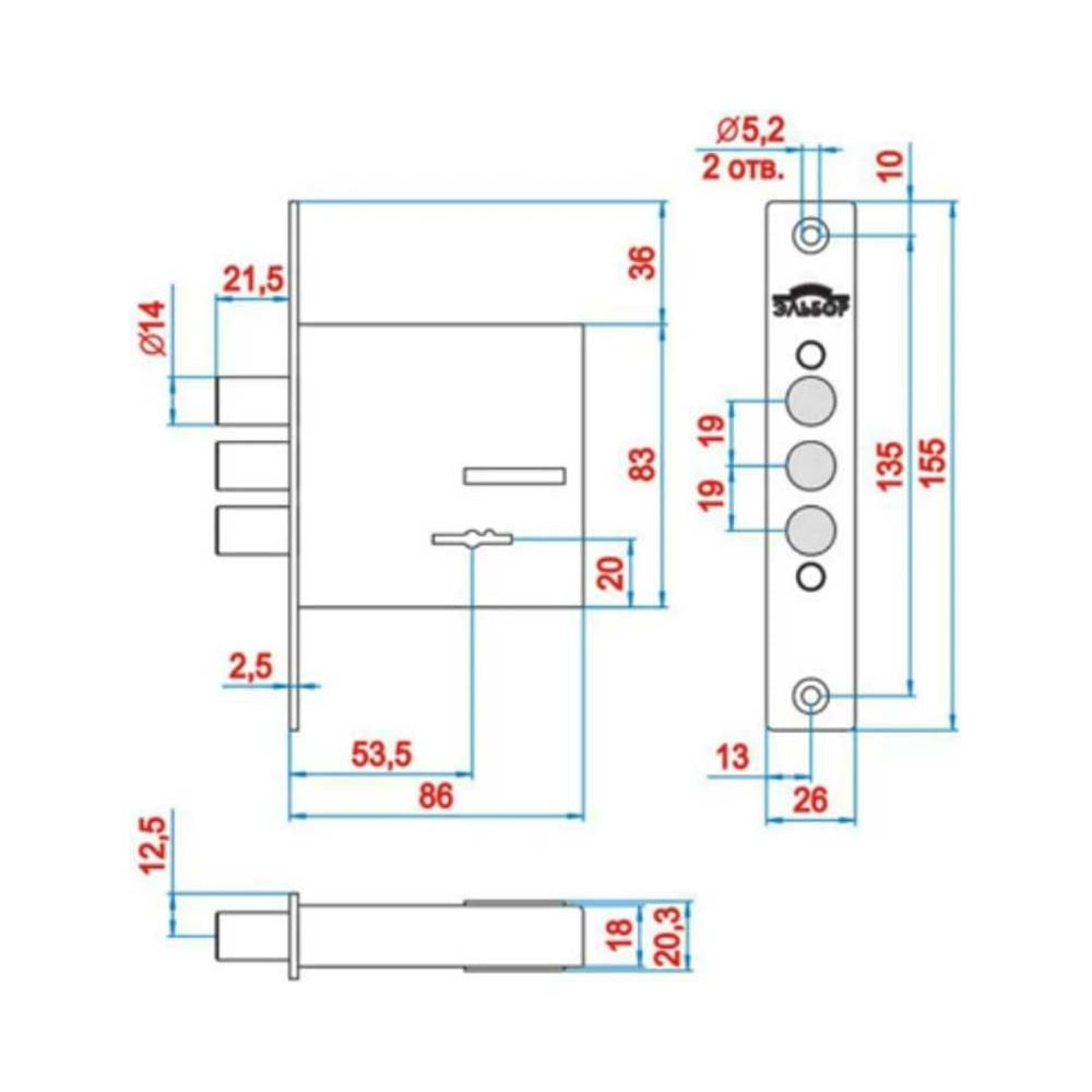 | Удаление ключевого отверстия (Backset) | 53.5 мм |