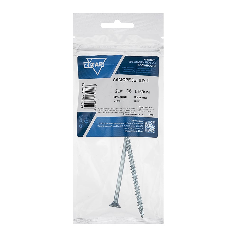 Саморез ШУц с потайной головкой 6,0x150 мм, 2 шт., пакет Zitar 102465