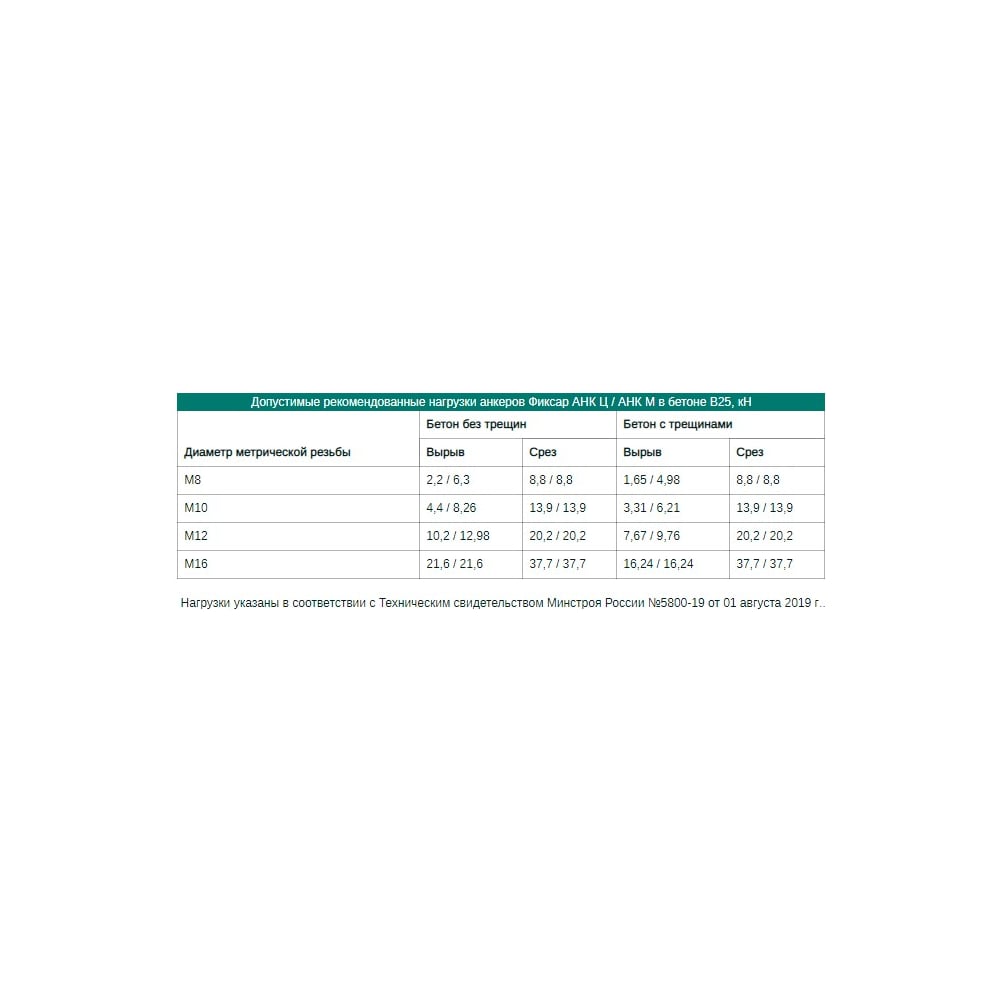 | Min вырывающая сила (бетон B25) | 20 КН |