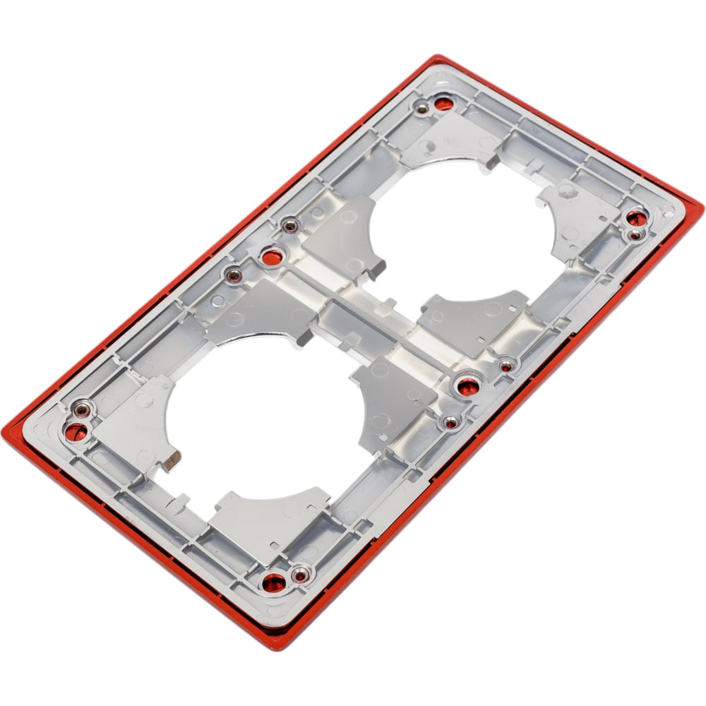 Материал цинк Цвет красный Вид рамка Вес нетто 0.03 кг Серия Bravo Степень защиты IP20 Модульная нет Палитра красный Крышка нет Количество постов 2 Для кабель-каналов нет Перегородка есть