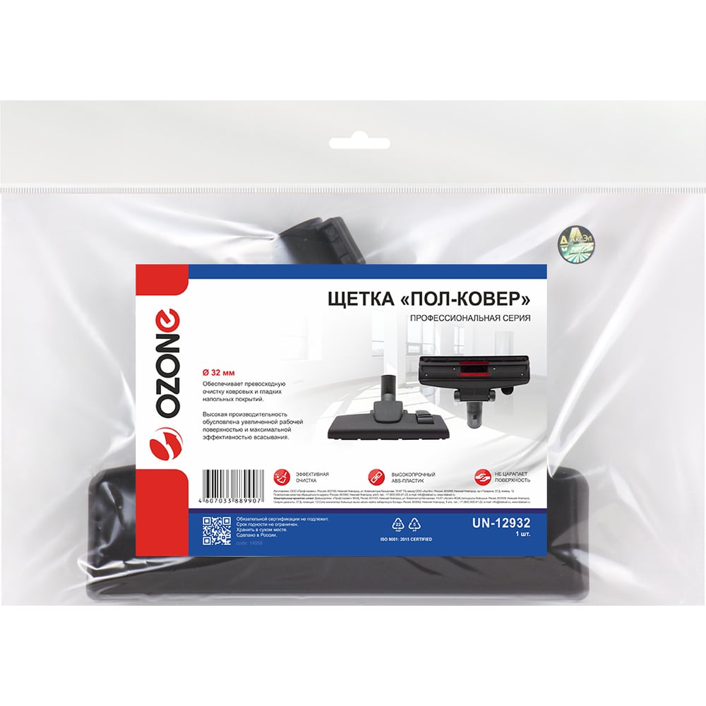 Насадка компактная "пол-ковер" для профессионального пылесоса под трубки 32 мм OZONE UN-12932