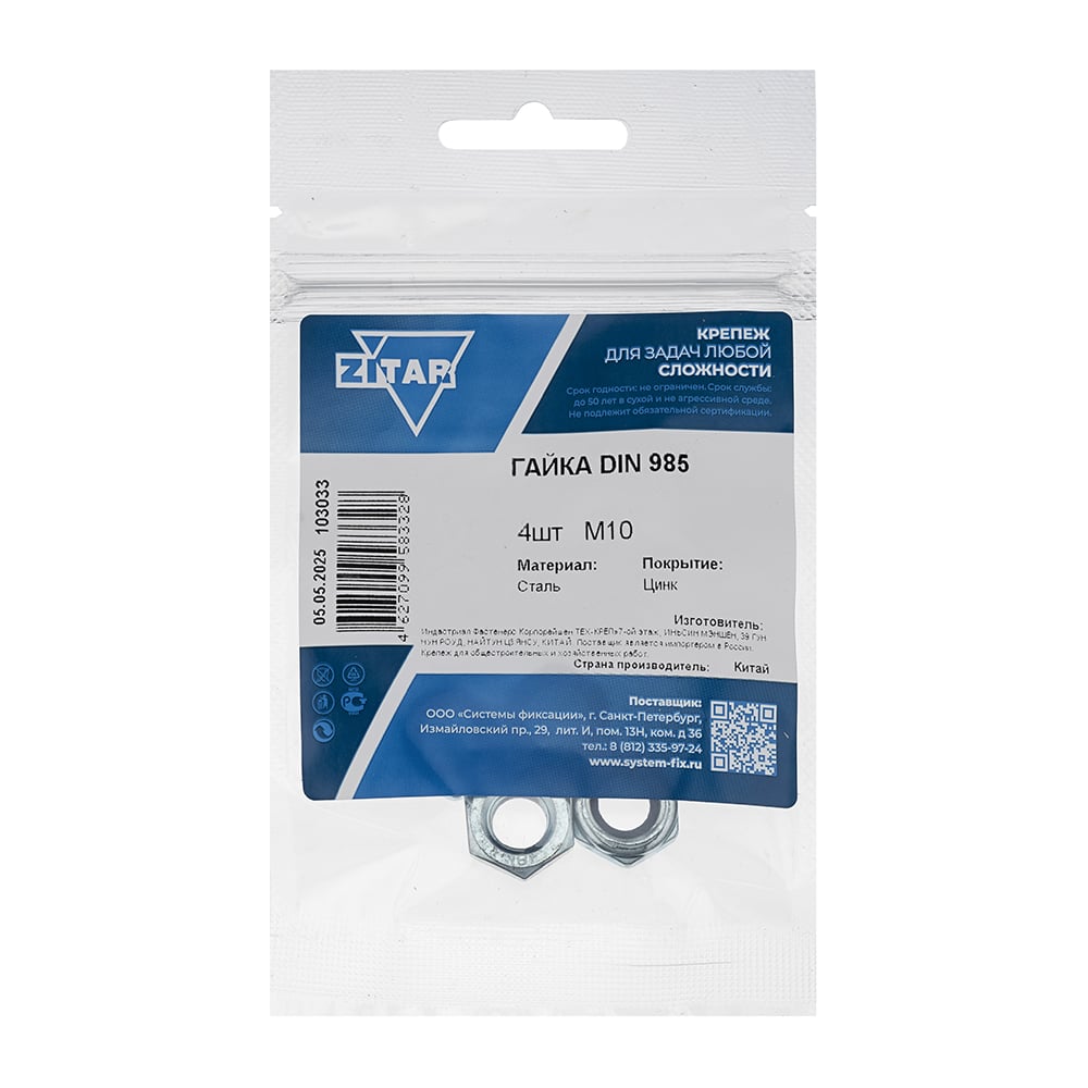 Гайка DIN985 самоконтрящаяся оцинкованный М10 4 шт Zitar 103033