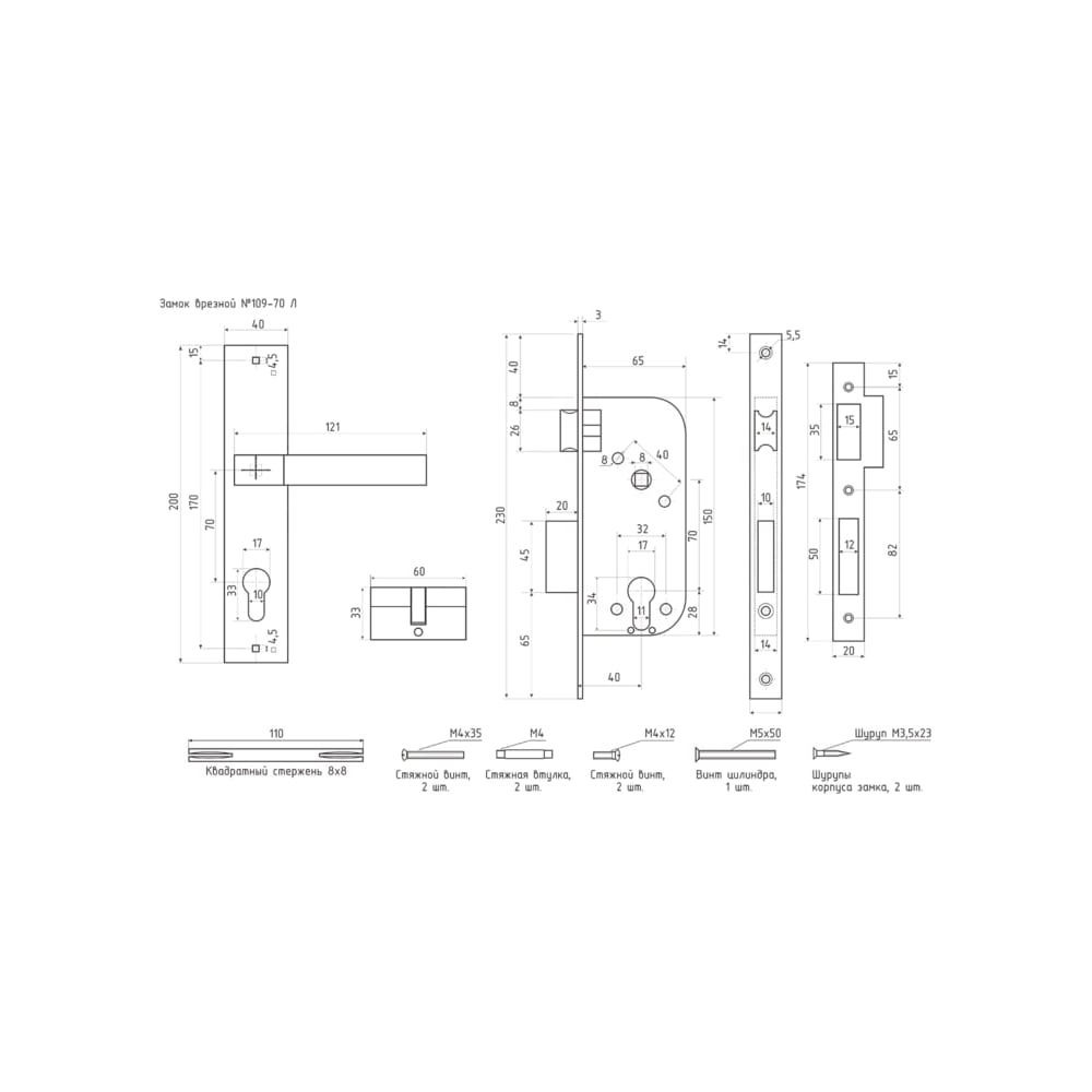 Высота 230 мм Длина 65 мм Комплектация корпус, механизм, ручки, ключи, ответная планка, крепеж Ширина 20 мм Класс товара Бытовой Коллекция нет Назначение для деревянных/металлических дверей Влагозащищенный нет С защелкой да Кодовый нет Ручки в комплекте да С вертушкой нет Уличный нет Антивандальный нет Сейфовый нет Двухсистемный нет Морозоустойчивость нет Противопожарный нет Удаление ключевого отверстия (Backset) 40 мм Вылет ригеля 20 мм Тип ключа английский Количество ригелей 1 шт Форма ригеля прямоугольник Количество ключей 5 шт Тип замка врезной Межосевое расстояние 70 мм Тип механизма секретности цилиндровый Тип запирания не автоматическое Направление открывания двери левое/правое Класс секретности малый Класс безопасности 1 Цвет лицевой планки графит