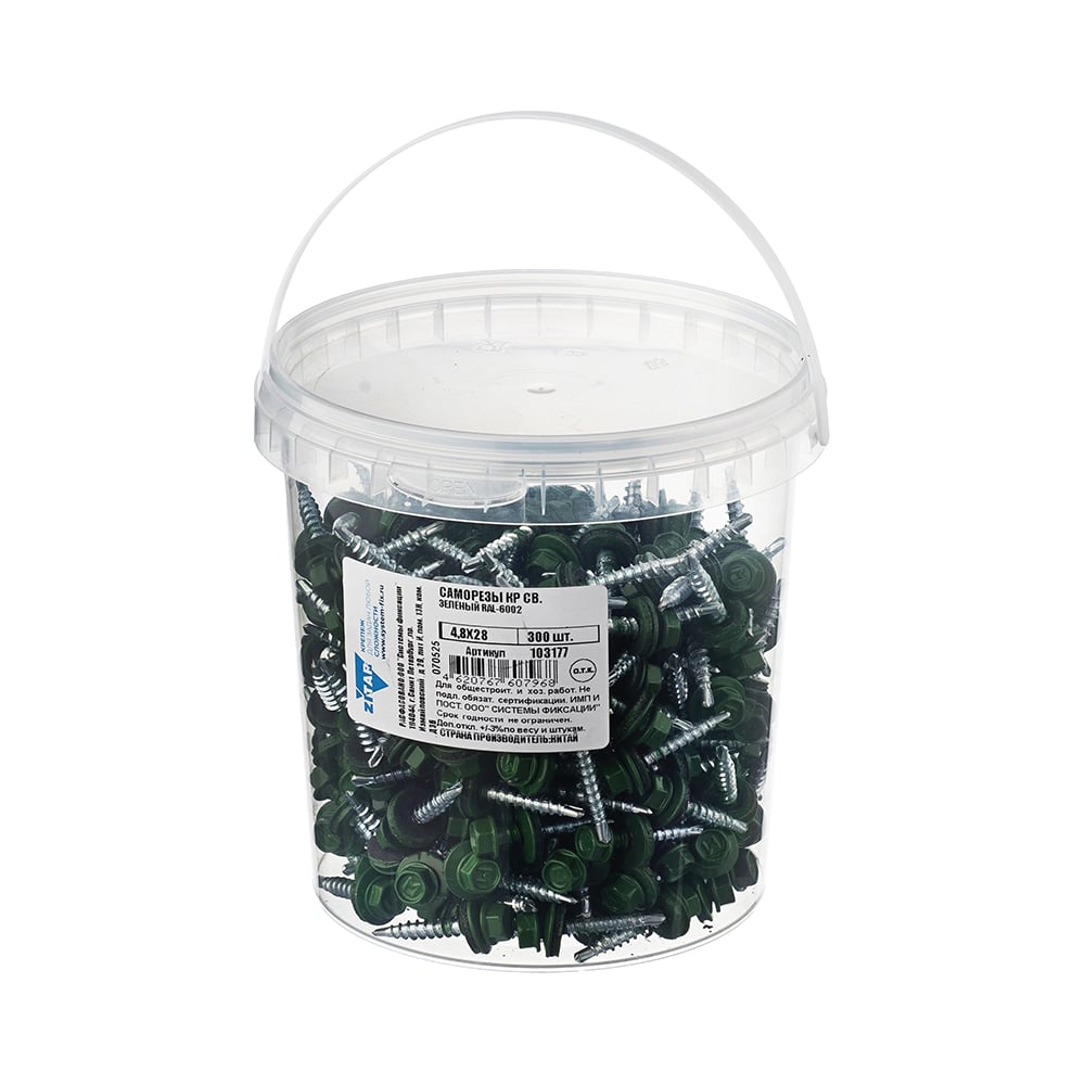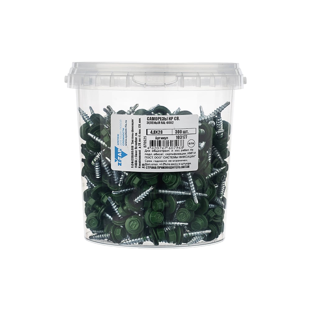 Саморез КР св. 4,8x28 RAL-6002 зелёный 300 шт - ведро Zitar 103177