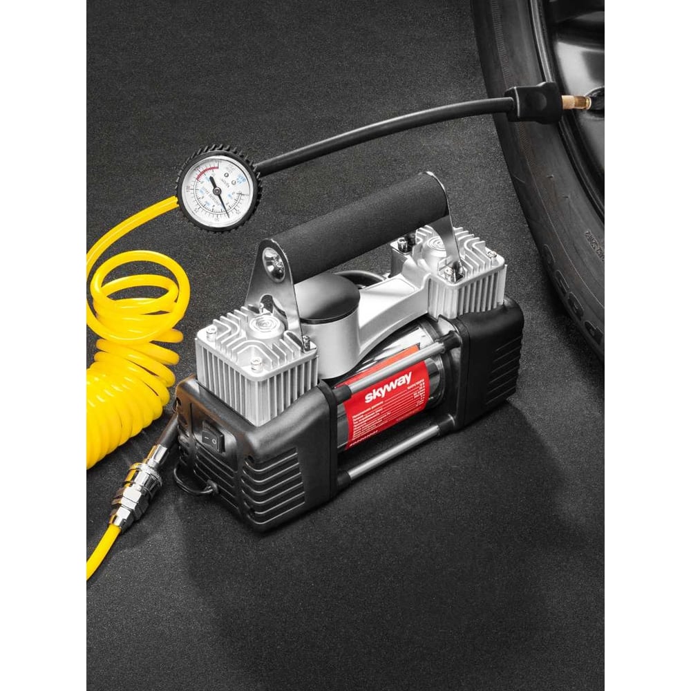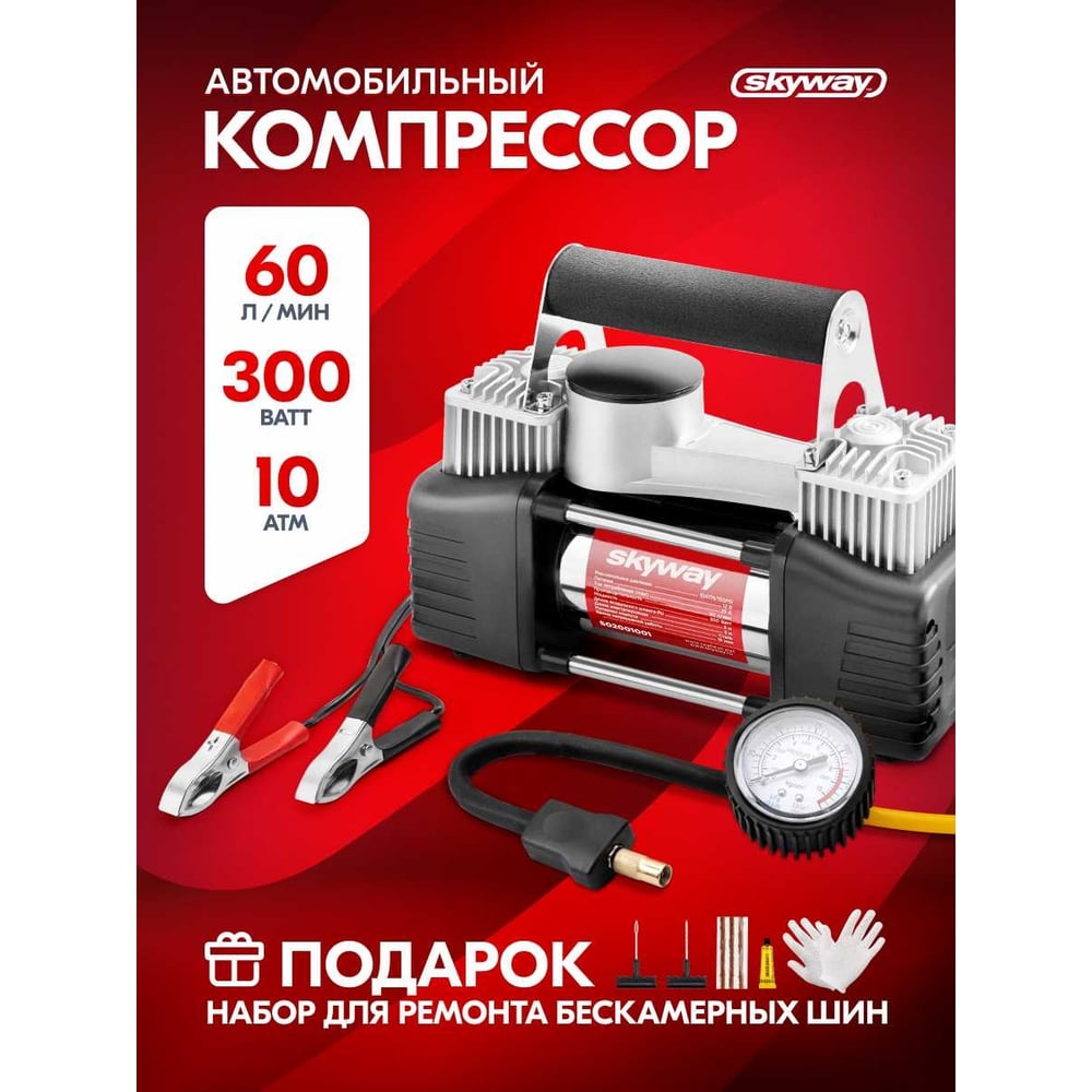 Металлический поршневой компрессор 60 л/мин 2х с крокодилами в сумке 10 АТМ SKYWAY БУРАН-05 S02001001