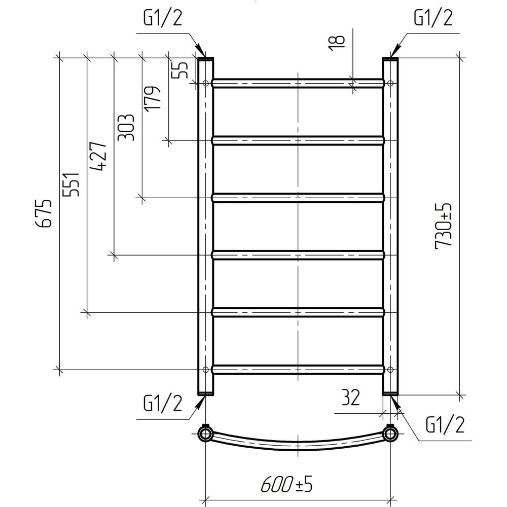 Водяной полотенцесушитель ТЕРА Ребро 600x800 ПСБ-12-14
