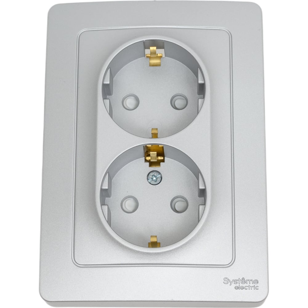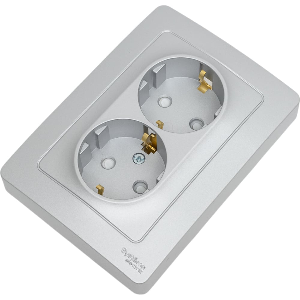 Розетка Systeme Electric Blanca внутр Алюминий 2-ая с/з со шторками, 16А, 250В SE BLNRS001123