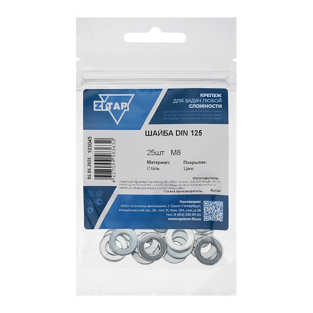 Шайба DIN125а плоская оцинкованный М8 25 шт Zitar 103045