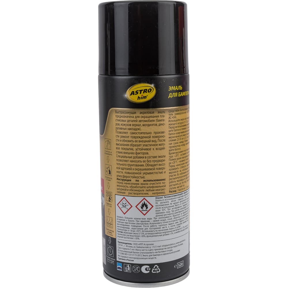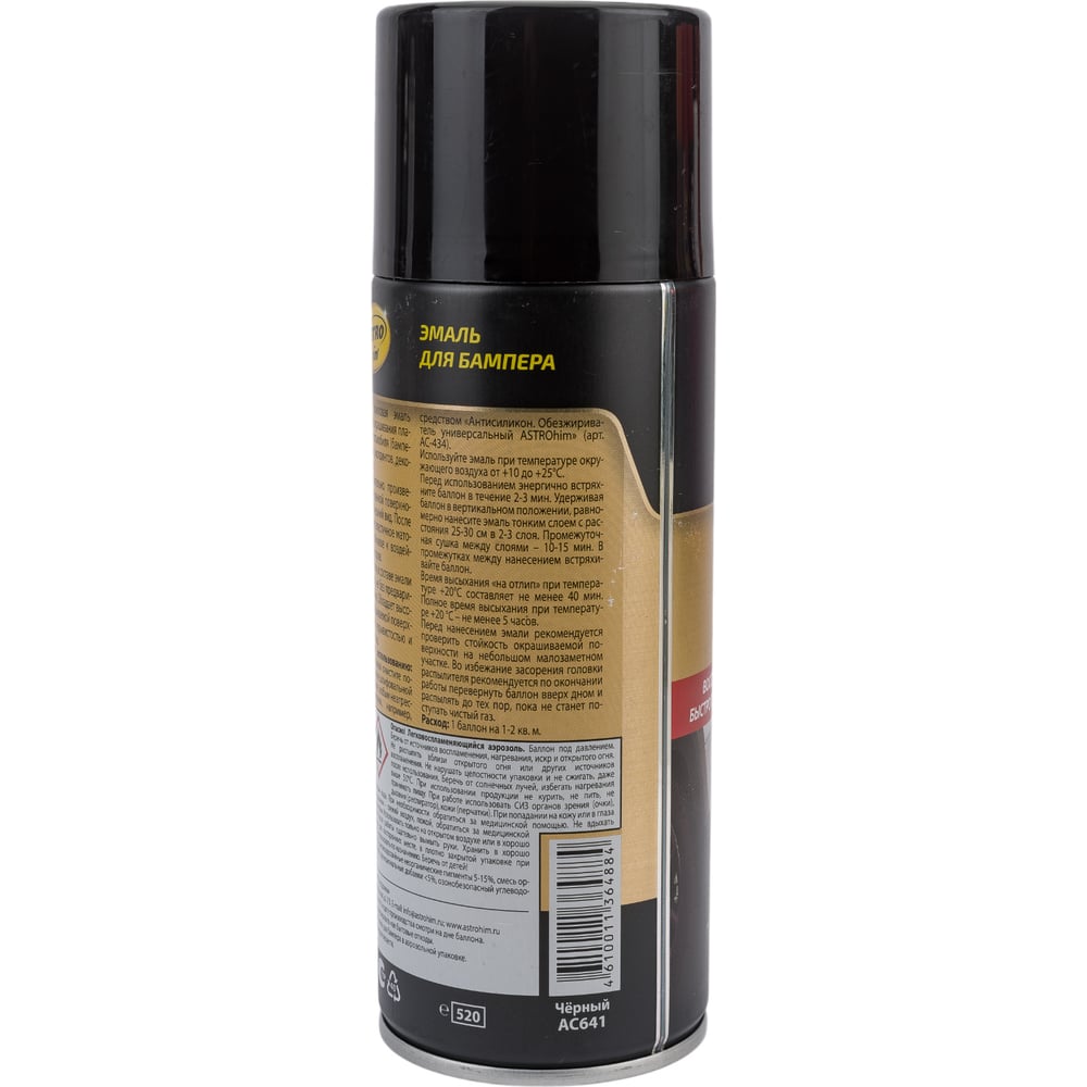 Эмаль для бамперов Astrohim аэрозоль, черная, 520мл AC641
