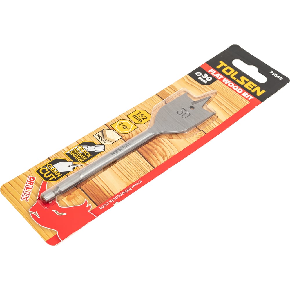 Сверло по дереву перьевое 30х152 мм, 1/4'' TOLSEN 75645