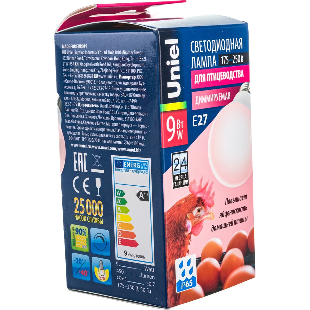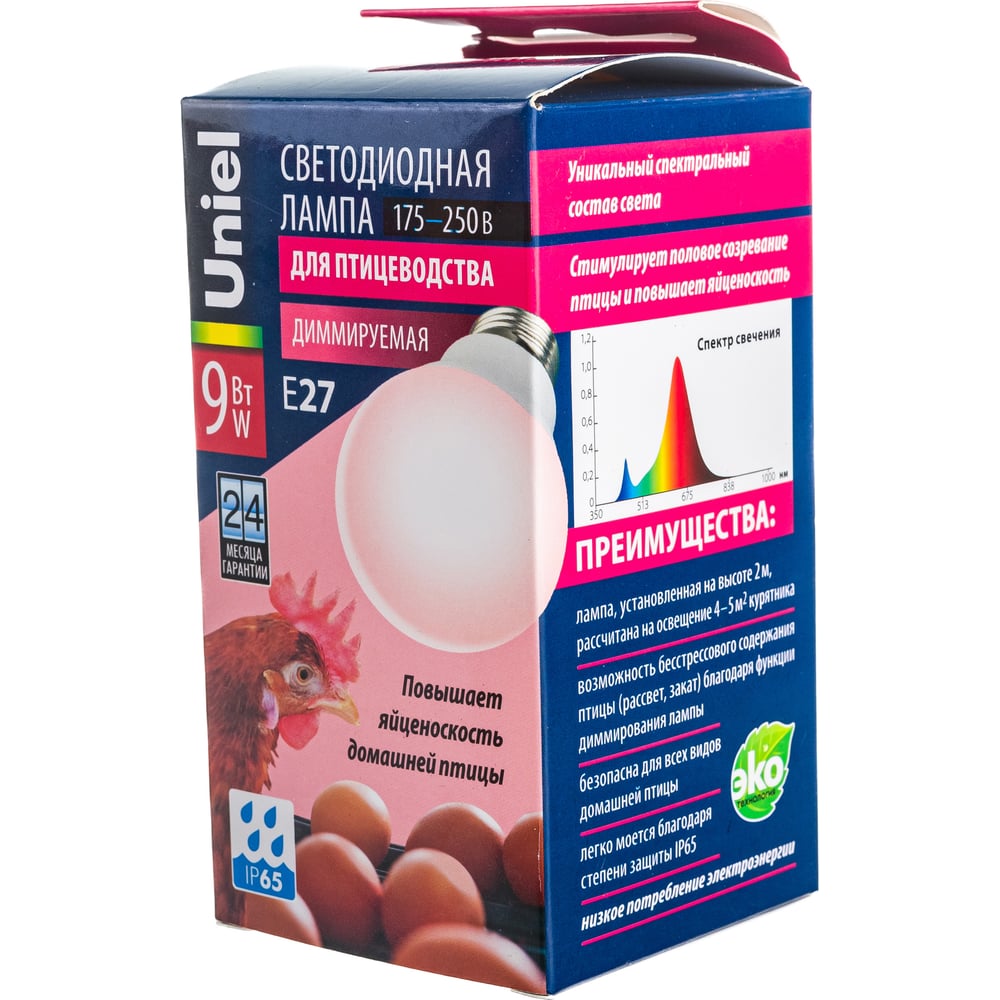 Светодиодная лампа для птиц Uniel LED-A60-9W/SCEP/E27/FR/DIM IP65 PLO65WH UL-00003189
