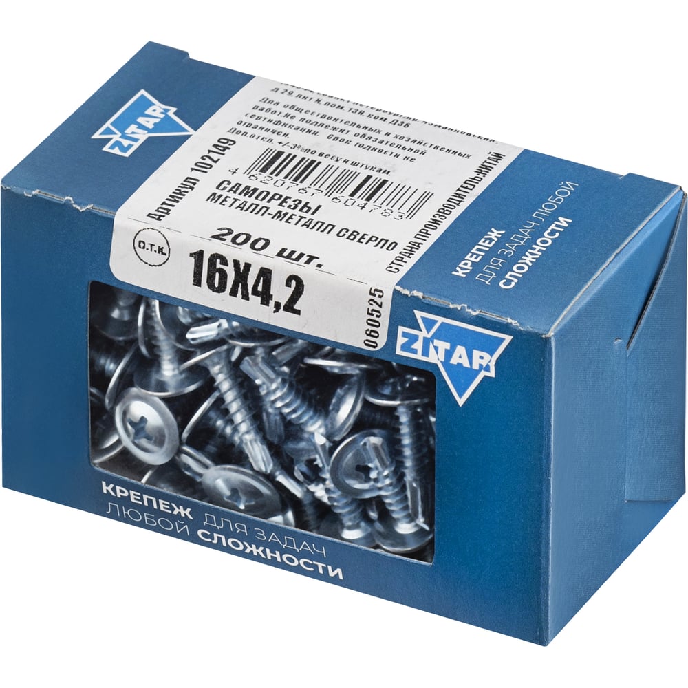 Саморез Zitar ШСММ св. 4,2x16 200 шт коробка с окном 102149