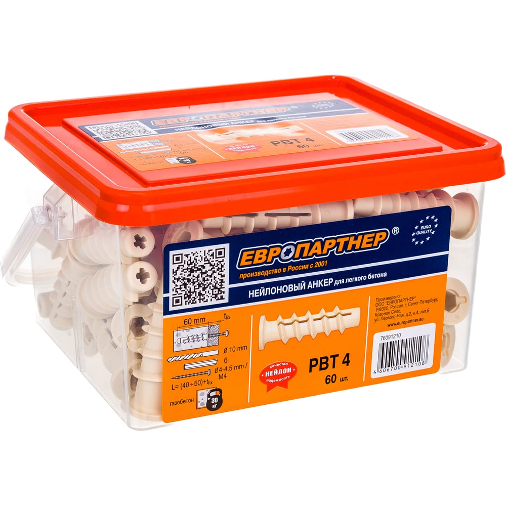 Дюбель для газобетона ЕВРОПАРТНЕР PBT 4, 60 шт. 76091210