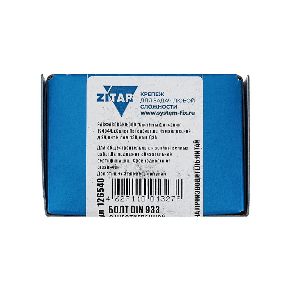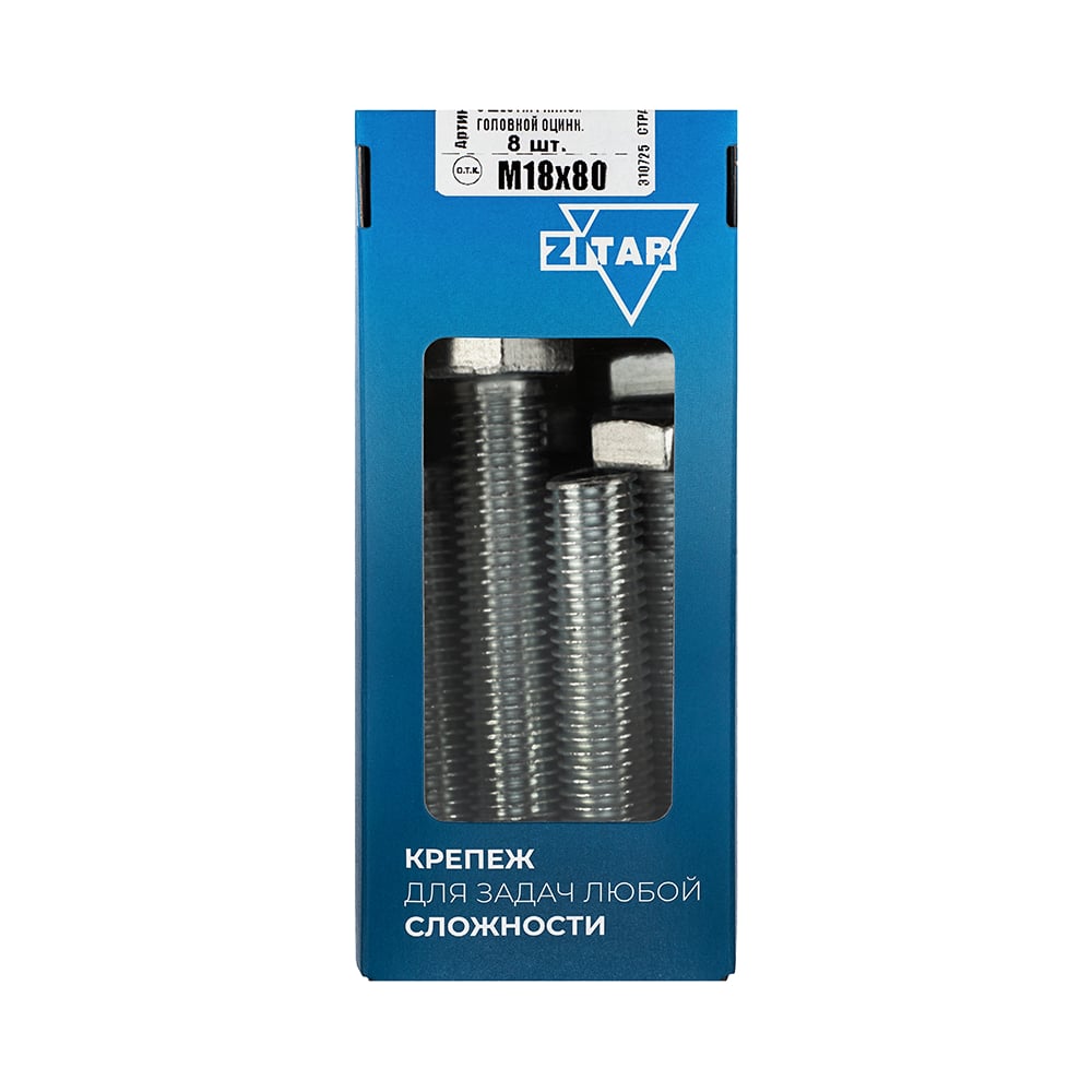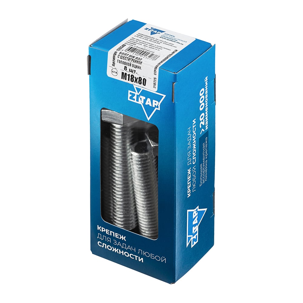 Болт с шестигранной головкой DIN933 оцинкованный, М18x80 мм, 8 шт в коробке с окном Zitar 126540