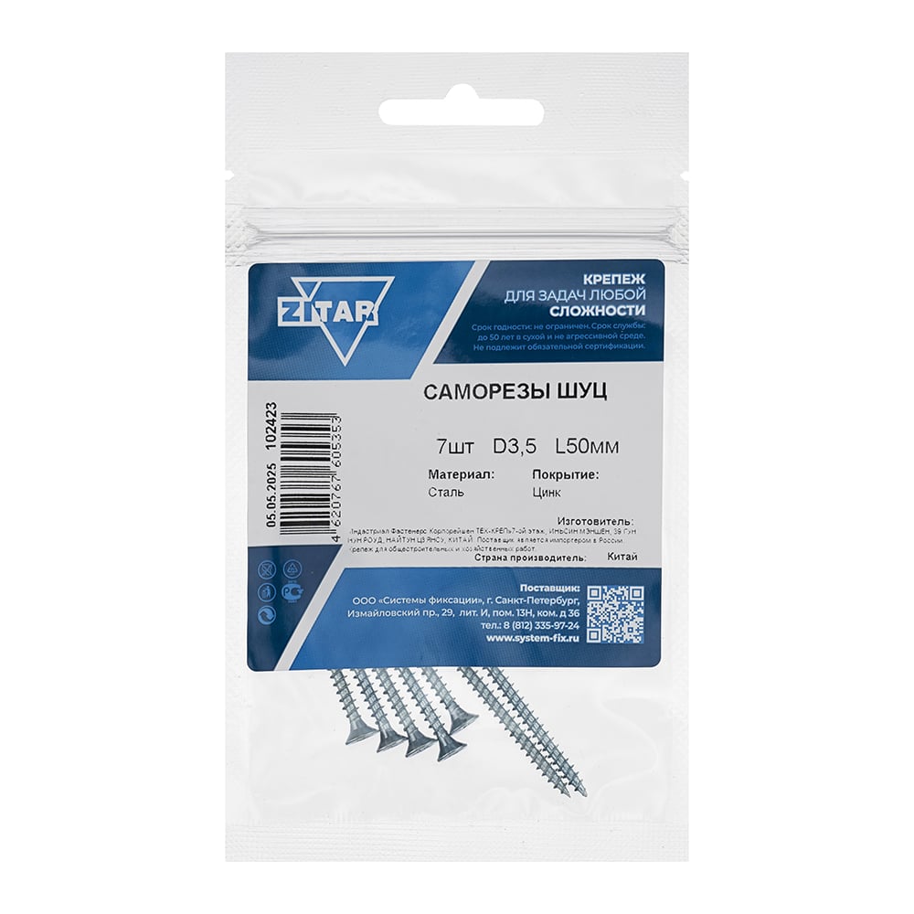 Саморез ШУц с потайной головкой 3,5x50 мм, 7 шт., пакет Zitar 102423