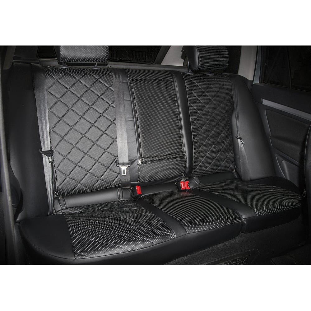 Авточехлы Rival Ромб (задняя спинка цельная) Volkswagen Polo седан 2010-2020, эко-кожа, черные, SC.5803.2