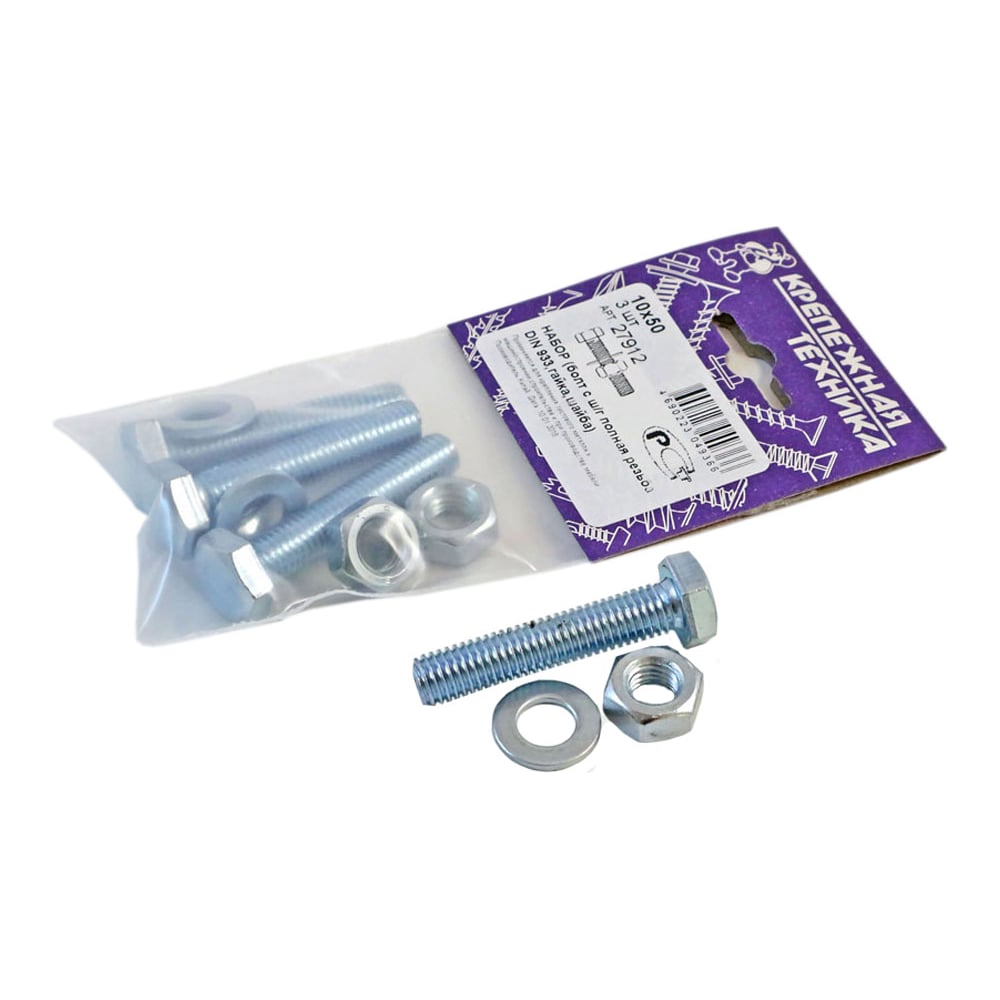 Болт с ш/г крепежная техника набор, полная резьба, din 933, 10x50, 3 шт. 27912