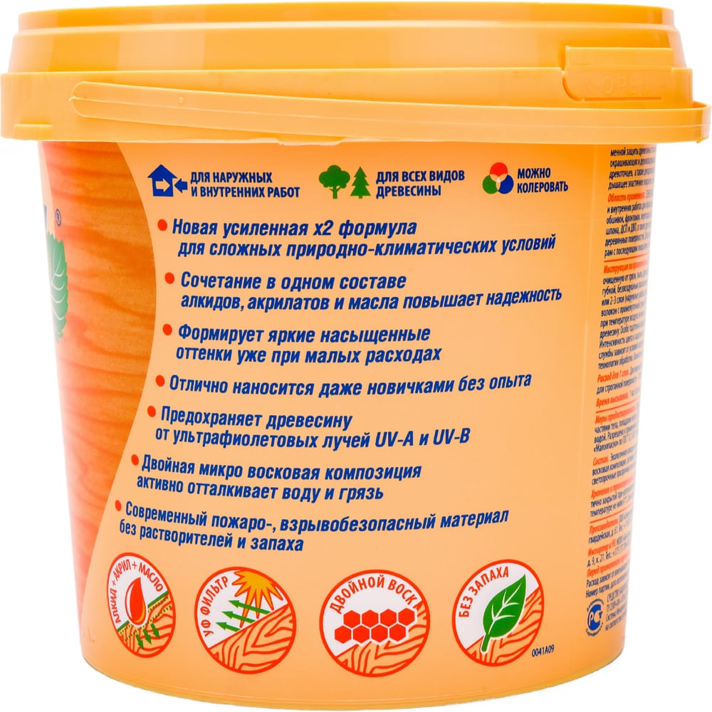 | Состав | состав на алкидно-акрилатной основе с добавлением льняного масла, биоцидов, активных УФ-фильтров, микровосков |