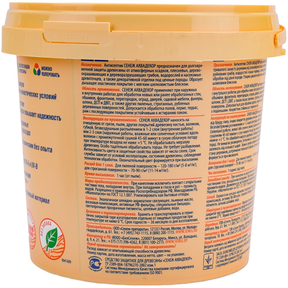| Состав | состав на алкидно-акрилатной основе с добавлением льняного масла, биоцидов, активных УФ-фильтров, микровосков |