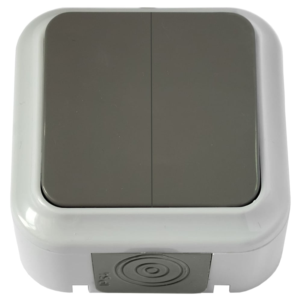 Выключатель Bylectrica 2-клавишная, открытая установка, 6А, IP54, серия ПРАЛЕСКА АКВА, серый, А56-224 03
