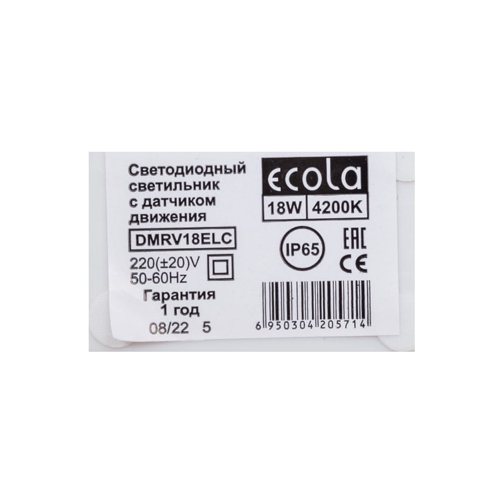 Светильник с датчиком движения Ecola LED ДПП IP65 матовый белый 18W 220V 4200K 175x45 DMRV18ELC