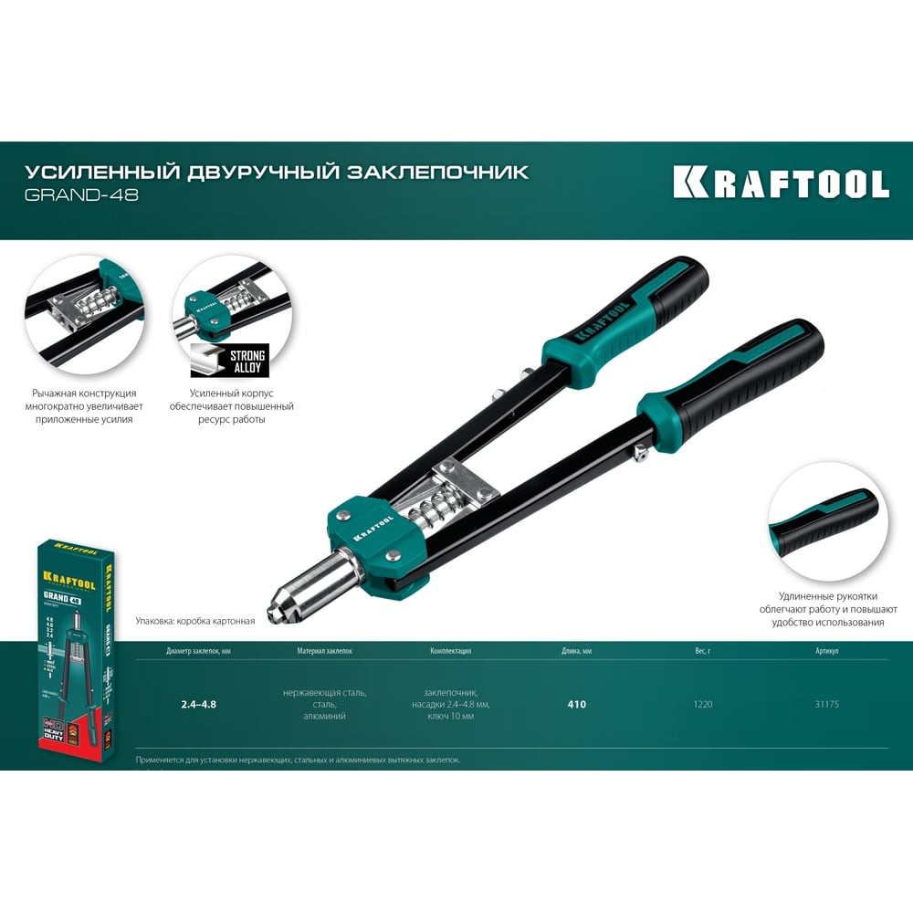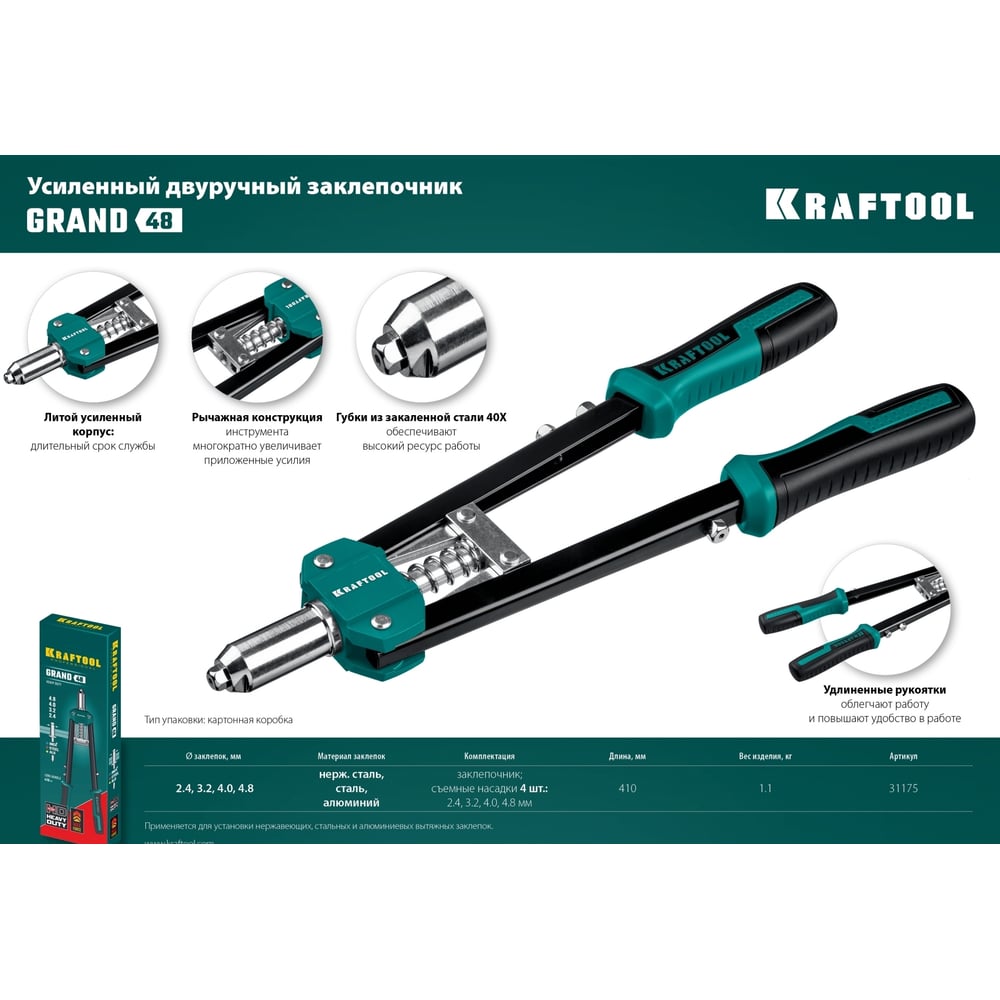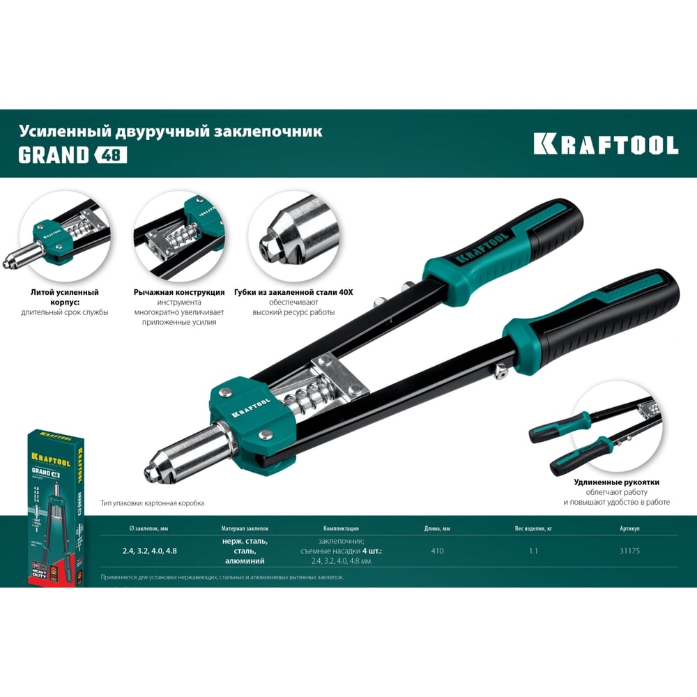 | Для заклепок 4.8 мм | да |