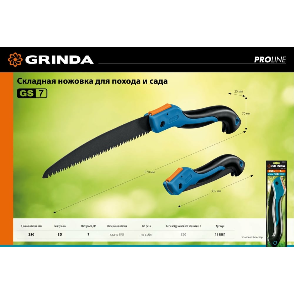 Ножовка для быстрого реза сырой древесины Grinda GS-7 151881