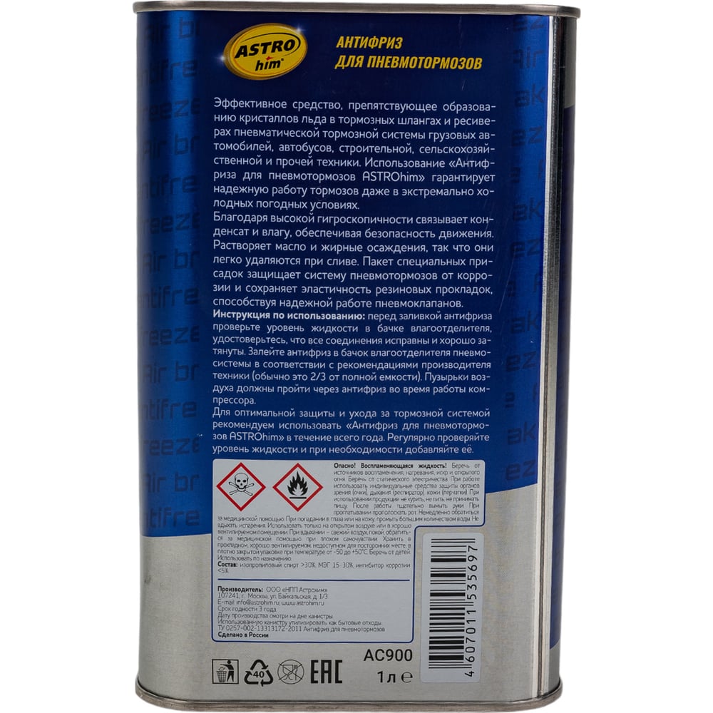 Антифриз для пневмотормозов Astrohim жестяная канистра, 1000мл AC900