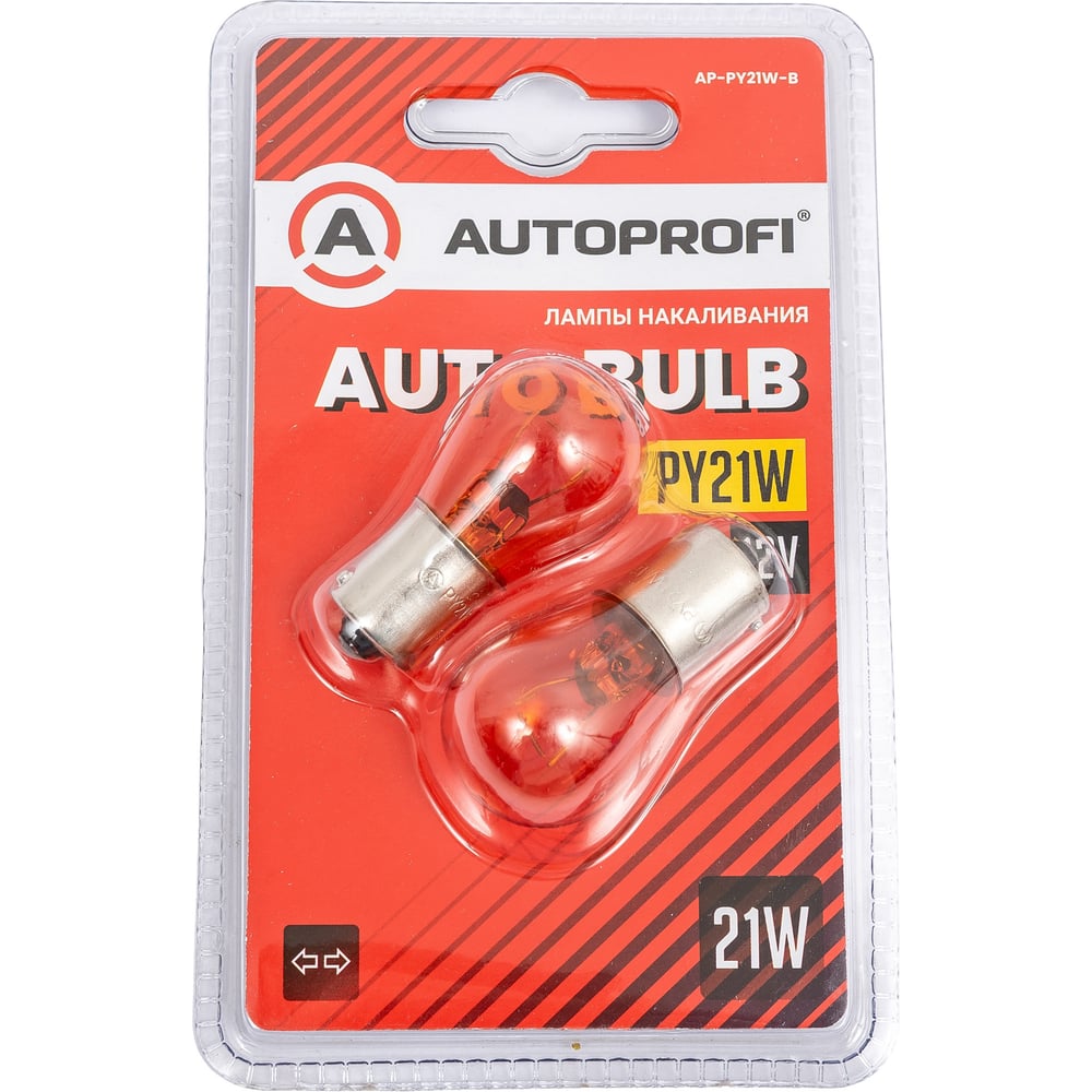 Автомобильные лампы накаливания AUTOPROFI PY21W, 12 В, 21 Вт, BA15s, 2 шт., оранж., блистер AP-PY21W-B