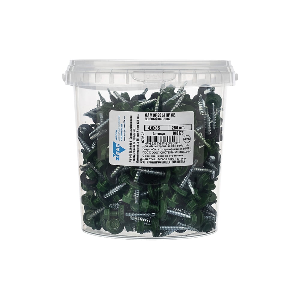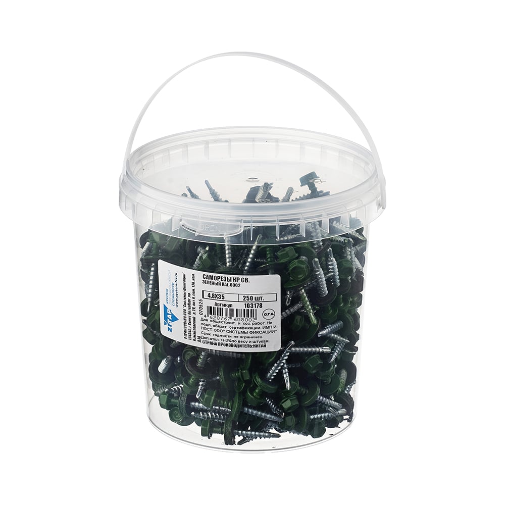 Саморез КР со сверлом 4,8x35 мм RAL-6002 зеленый, 250 шт в ведре Zitar 103178
