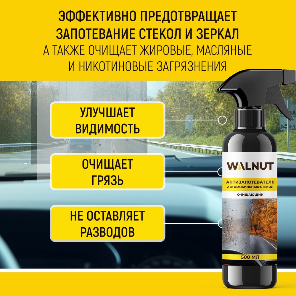 Антизапотеватель автомобильных стекол WALNUT очищающий, 500 мл WLN0540