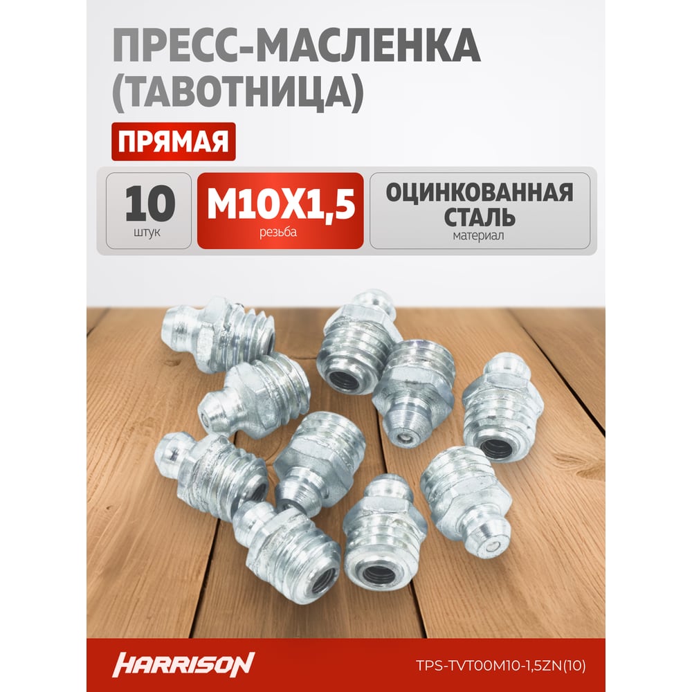 Прямая пресс-масленка (тавотница) М10х1, оцинкованная сталь, упак. 10 шт Harrison TPS-TVT00M10ZN (10)