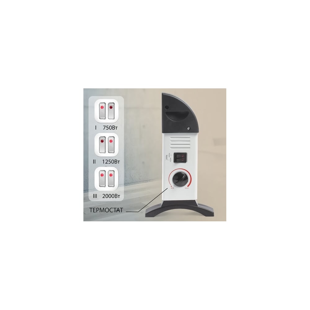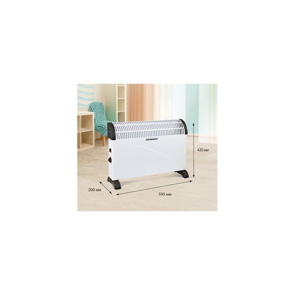 Обогреватель-конвектор SONNEN Y-01S, 2000 Вт, 3 режима работы, белый/черный, 455309