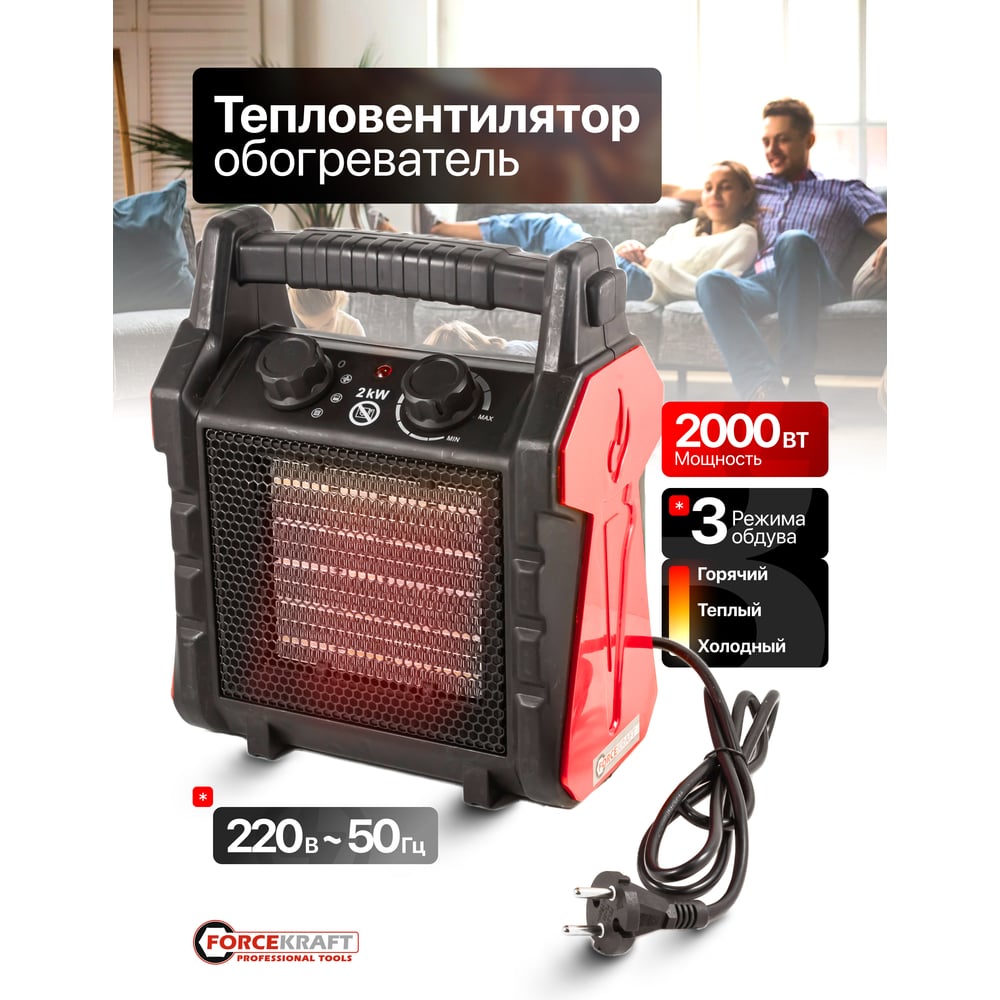 Электрическая тепловая пушка Forcekraft 2000Вт, 220В,50Гц, 3 режима нагрева:20/1000/2000Вт, площадь обогрева-30м2, защита от перегрева, встроенный термостат FK-BH-20R3(51896)