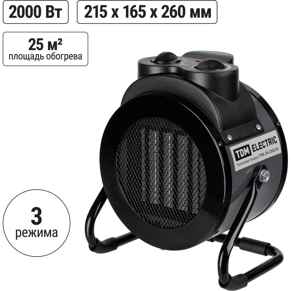 Тепловая пушка TDM ELECTRIC тпк-2к, круглый корпус, 2 квт (1/2 квт), терморегулятор, керамический нагревательный элемент, SQ2520-0105