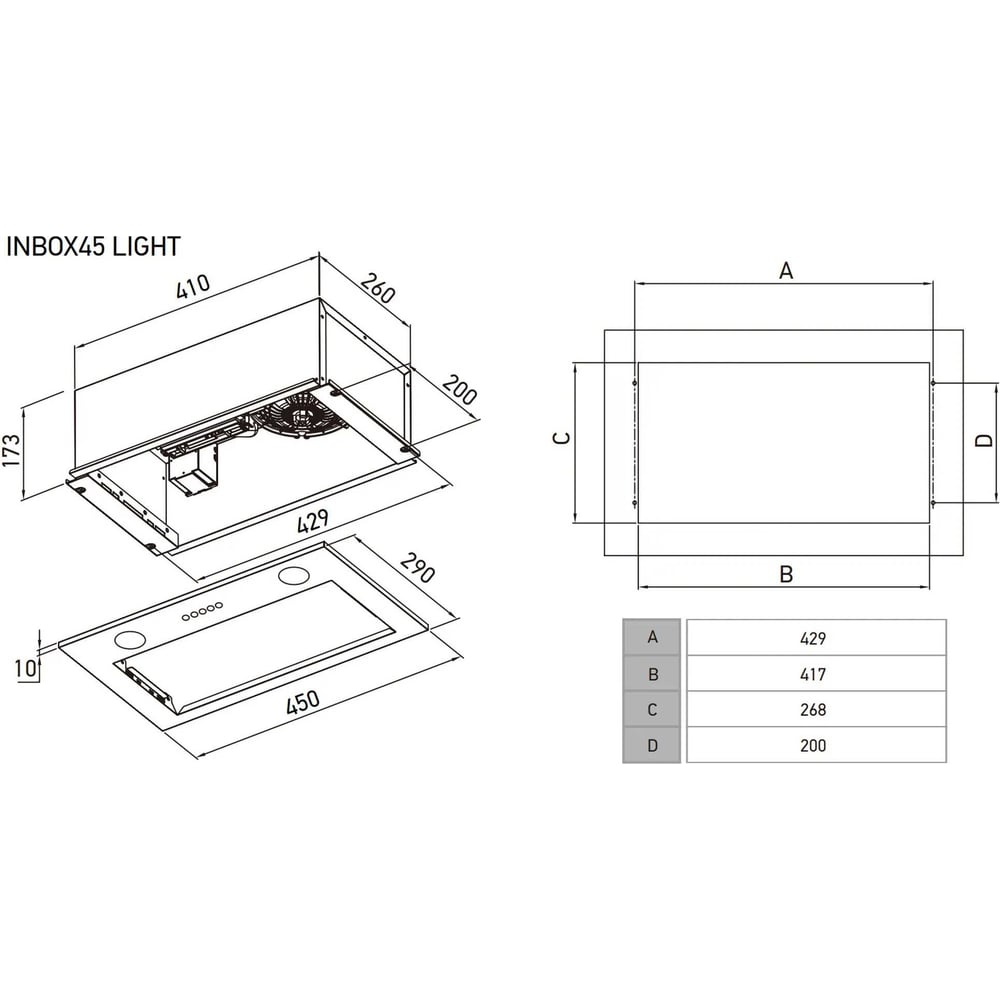 Полновстраиваемая вытяжка MEFERI INBOX45IX LIGHT
